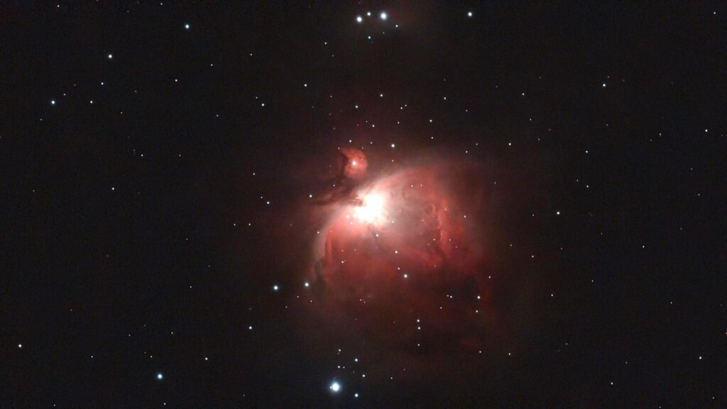 Ter introductie eerst een beetje technische informatie over de telescoop. Onder de foto’s staat een uitgebreider overzicht van de technische specificaties.De foto’s op deze pagina zijn gemaakt met de Dwarf Mini Telescoop. In deze telescoop zitten twee lenzen: een 1016 mm full-frame equivalent voor grotere deep-sky objecten, en een 45 mm equivalent groothoeklens om de Melkweg of sterrensporen vast te leggen. Daardoor kun je zowel inzoomen op nevels als brede landschappen fotograferen. De hoofdrol is weggelegd voor de Sony STARVIS 2 IMX662-sensor, die door DwarfLab wordt gecombineerd met een geïntegreerd Astro-filter en een Duo-Band Ha/OIII-filter voor nevels.